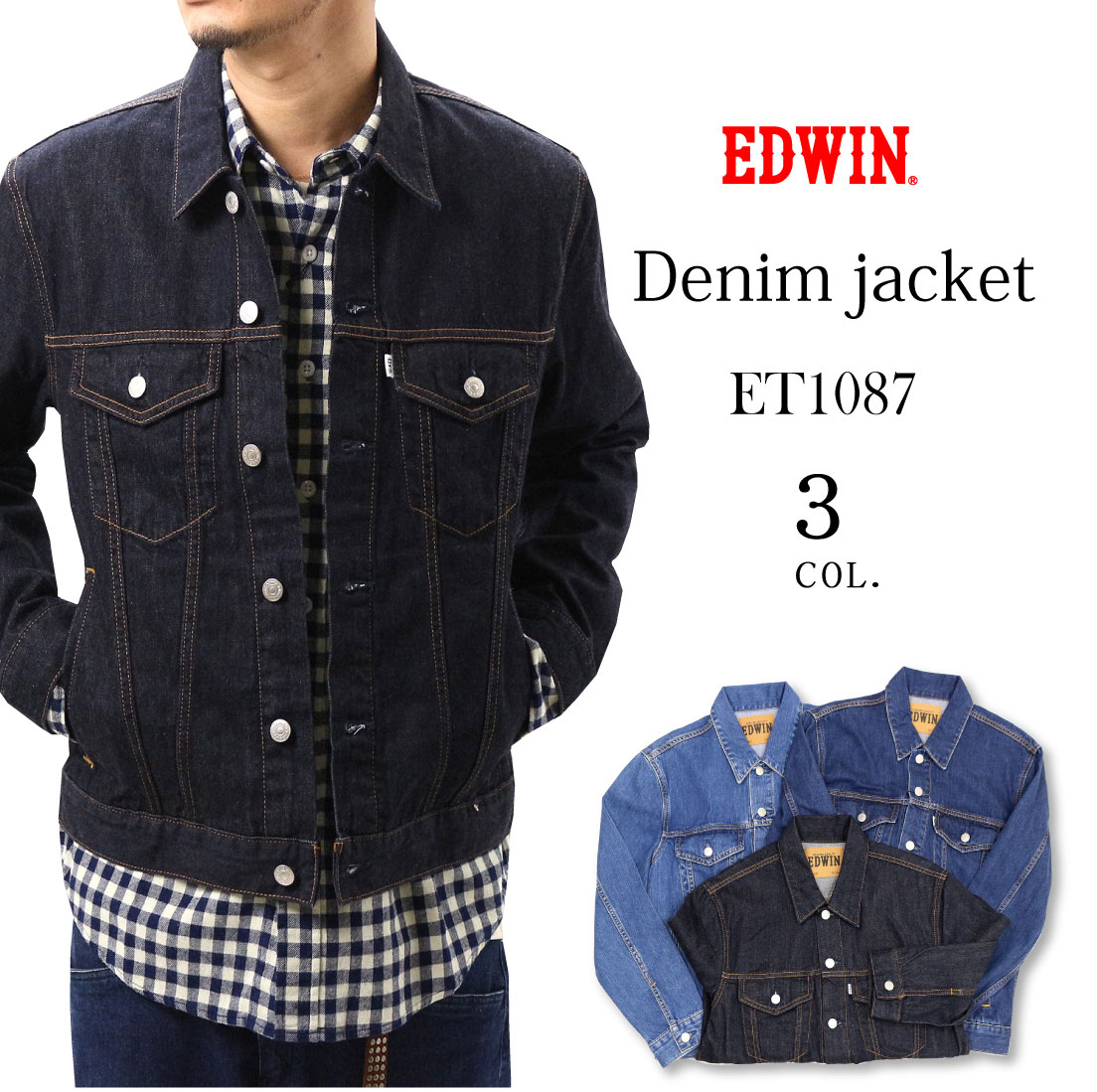 EDWIN エドウィン ET1087 Gジャン ベーシックデニムジャケット アウター トラッカージャケット ジージャン メンズ カジュアル アメカジ オールシーズン